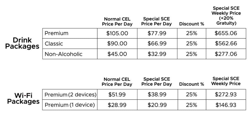 Signature Cruise Experiences and Celebrity Cruises have worked together to offer special discounts on Beverage and Wi-Fi Packages for those guests who complete their purchases BEFORE sailing. These discounts (noted below) will expire on February 23, 2026, and require no special procedure as they are loaded into Celebrity Cruises’ Pre-Cruise Planner.